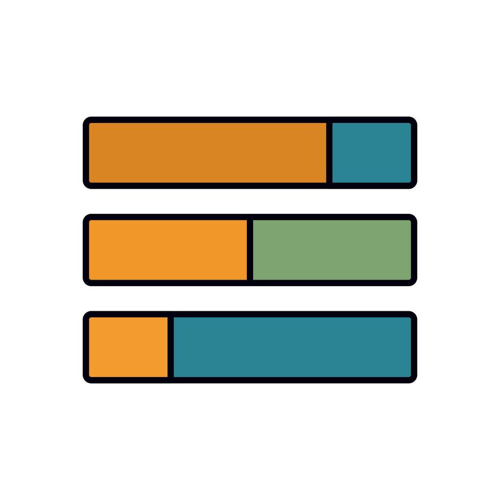 Cartoon design showing multi section horizontal bar graphs for survey results and statistical reporting Pro Vector