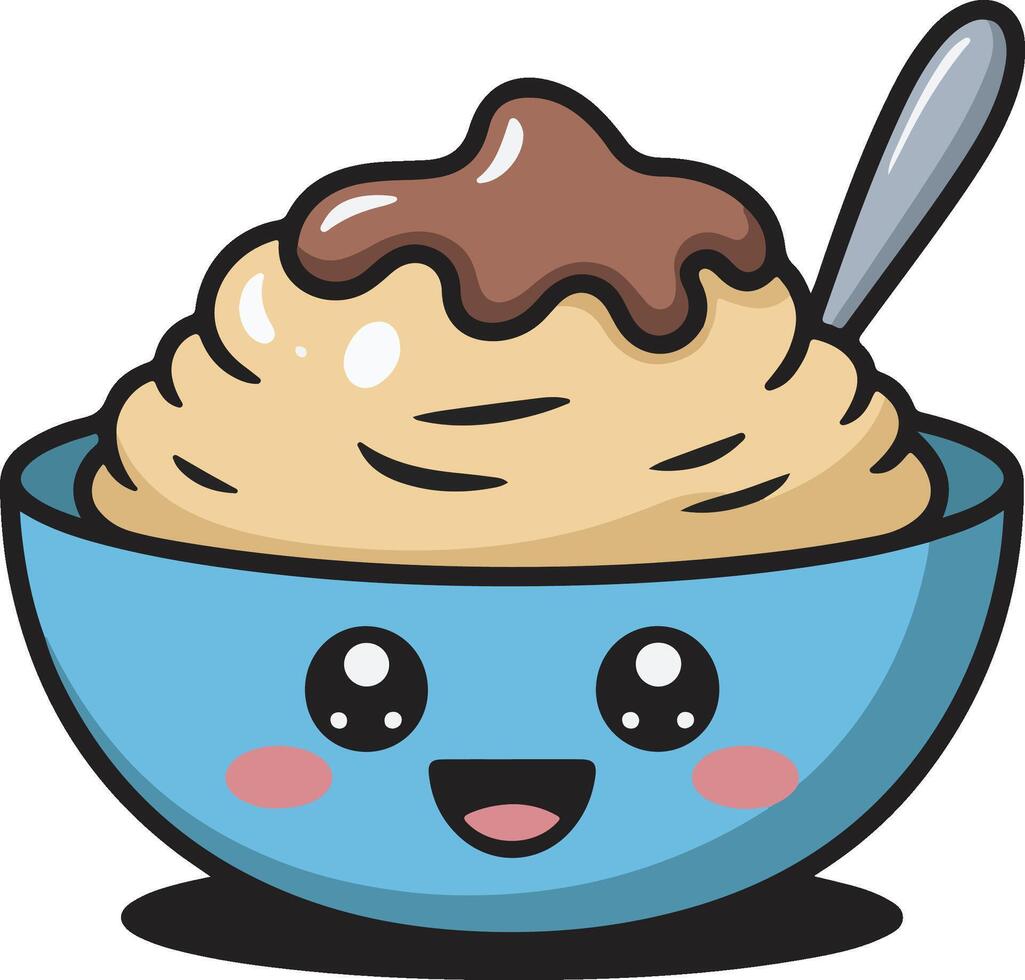 Mashed Dessert with Smiling Face in Bowl Illustration on Transparent Background Design Pro Vector
