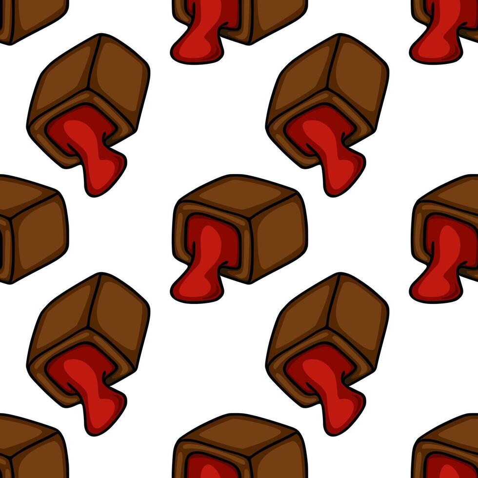A delightful pattern featuring chocolate candies with flowing red filling, presented in a playful, hand-drawn style. Pro Vector
