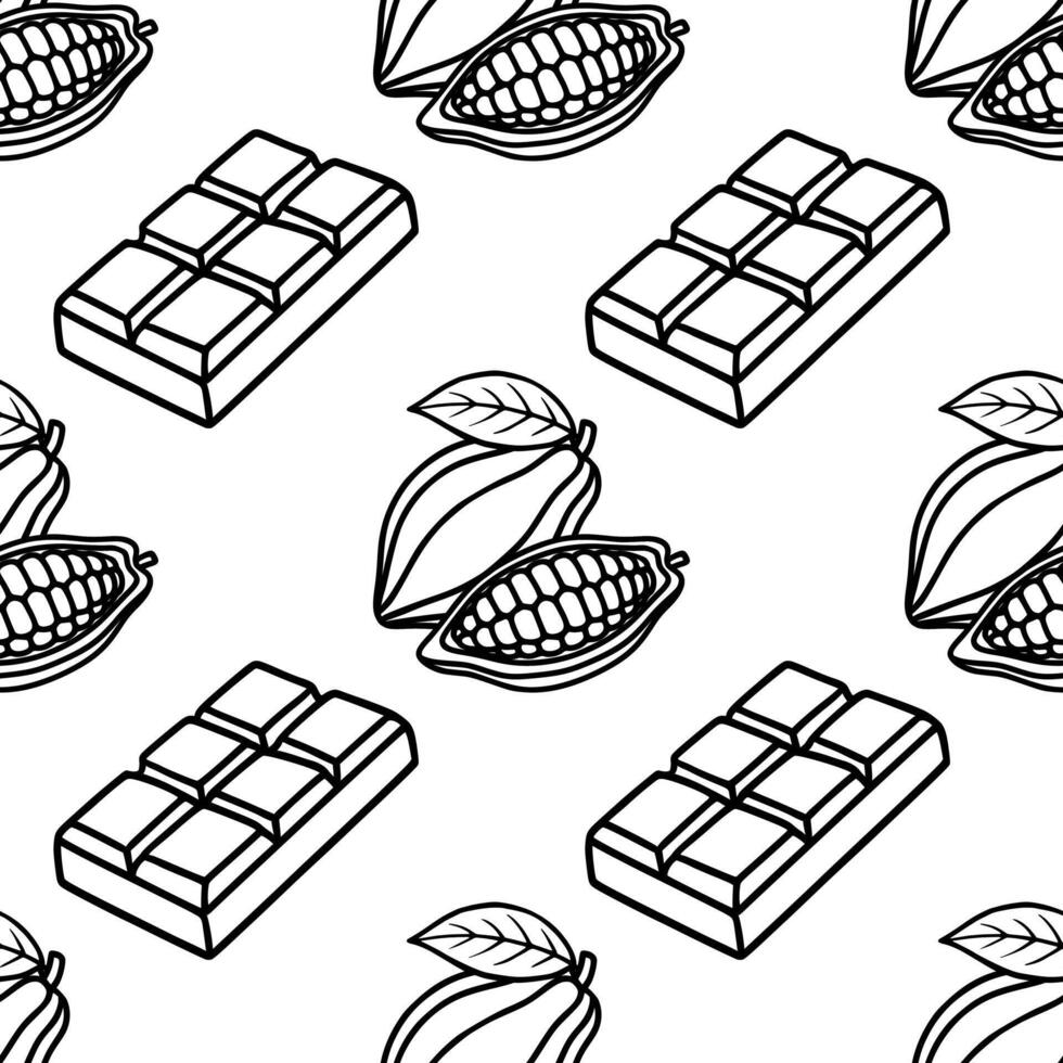 A minimalist black and white isometric pattern featuring stylized cocoa pods and chocolate bars, ideal for backgrounds and textures. Pro Vector