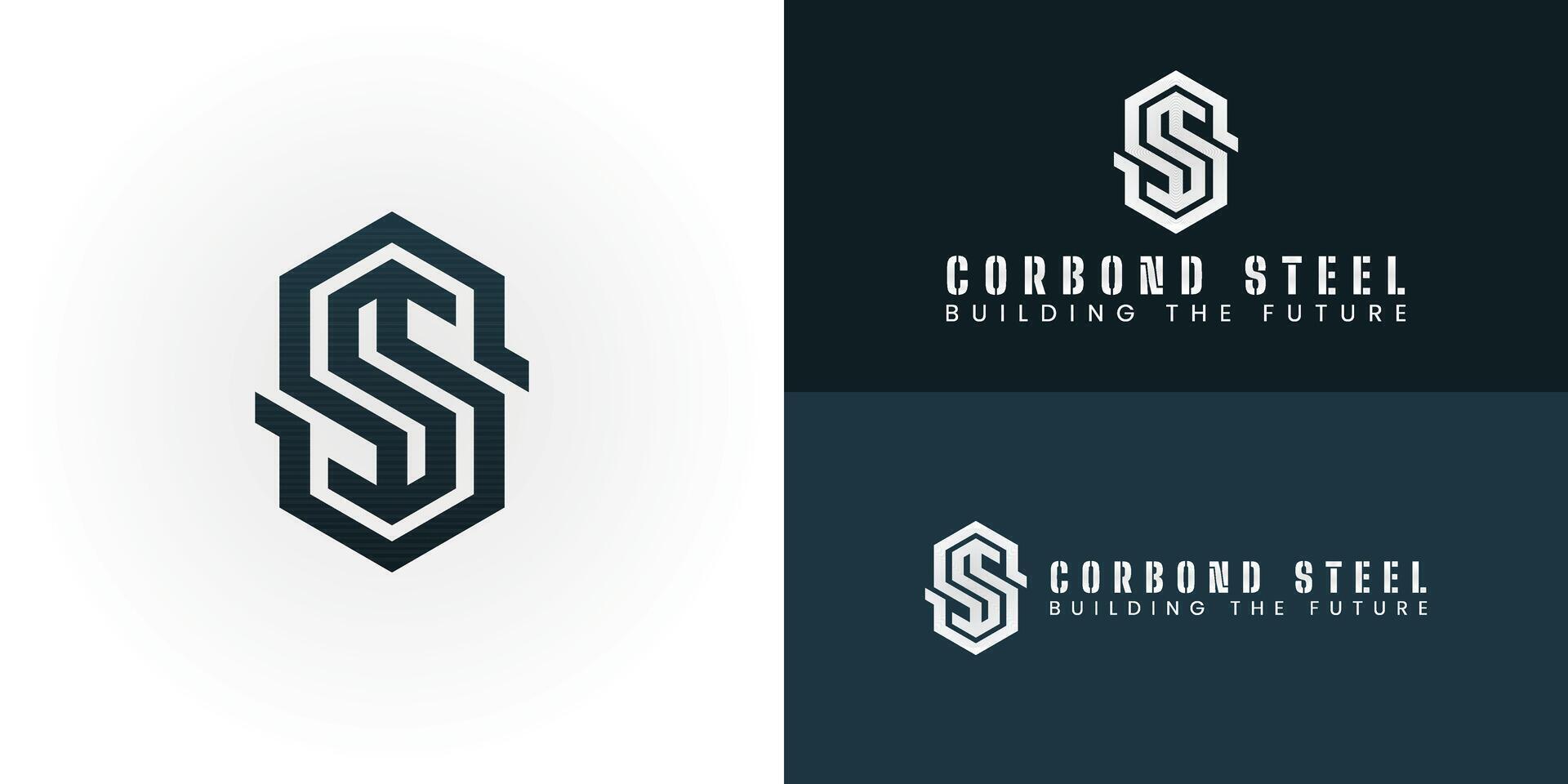 Abstract monoline S in a hexagonal frame conveys strength and modern construction. Its geometric form suggests interlocking steel structures, making it ideal for a dependable structural steel company. Pro Vector