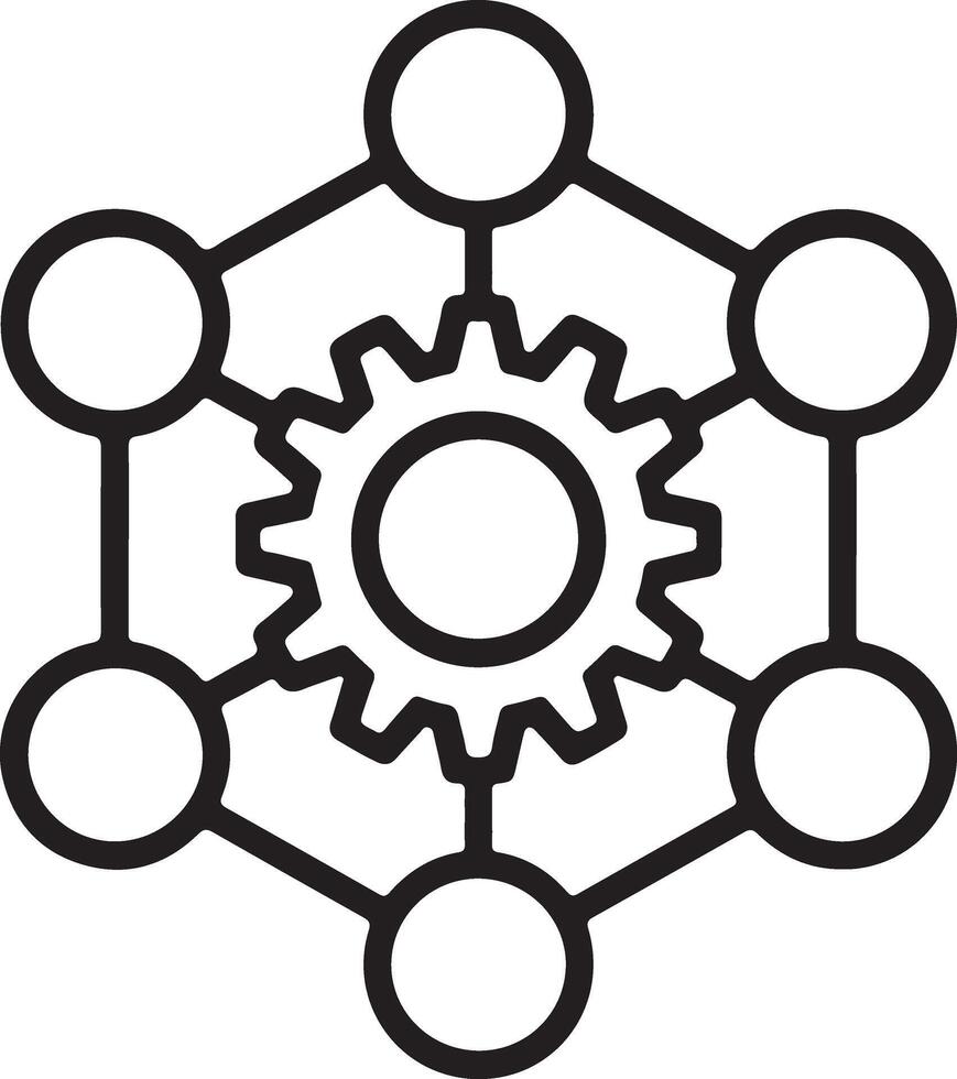 Abstract network of connected nodes surrounding a central gear mechanism Pro Vector