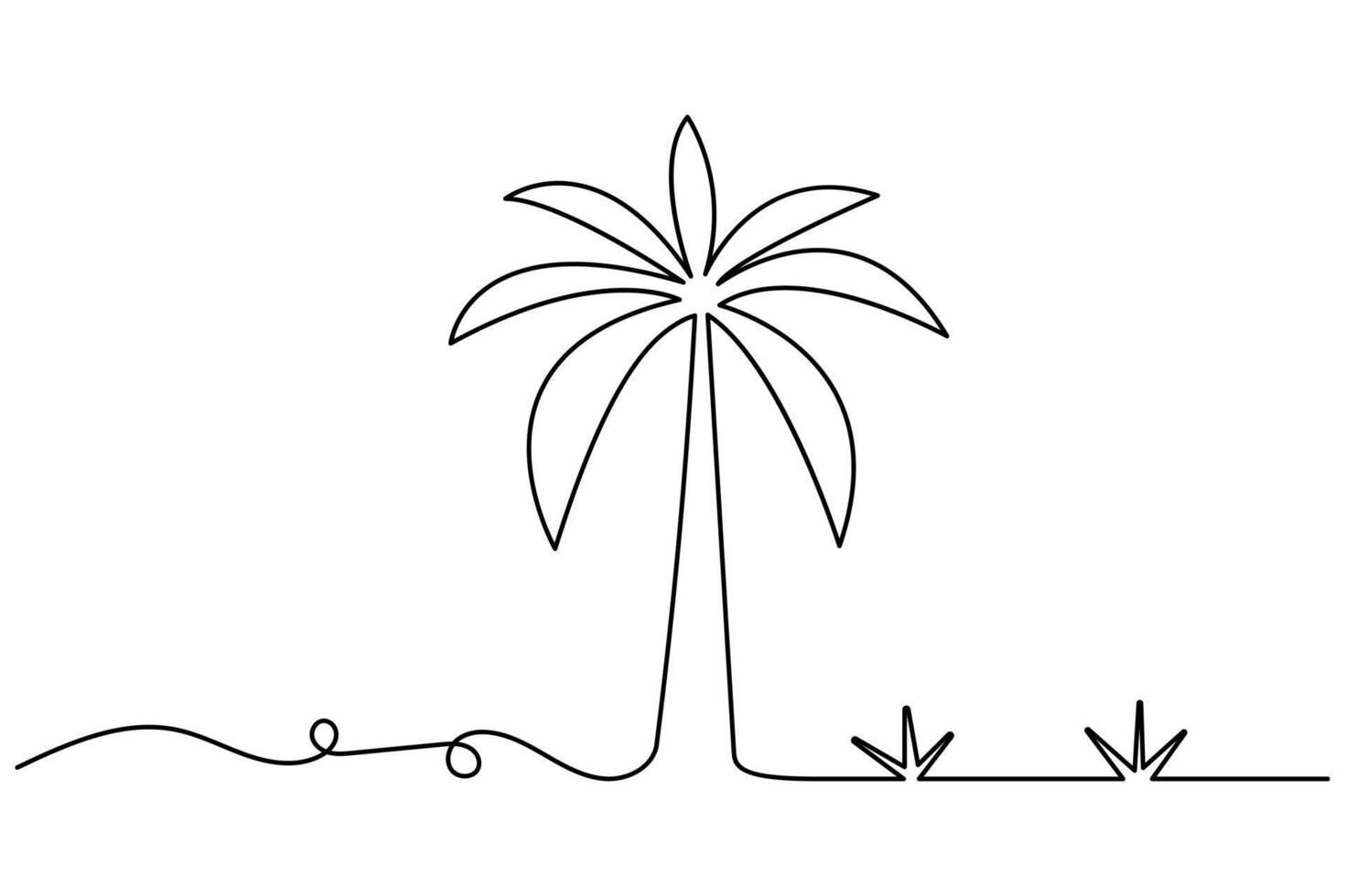 Simple tropical palm tree continuous line elegant design Pro Vector