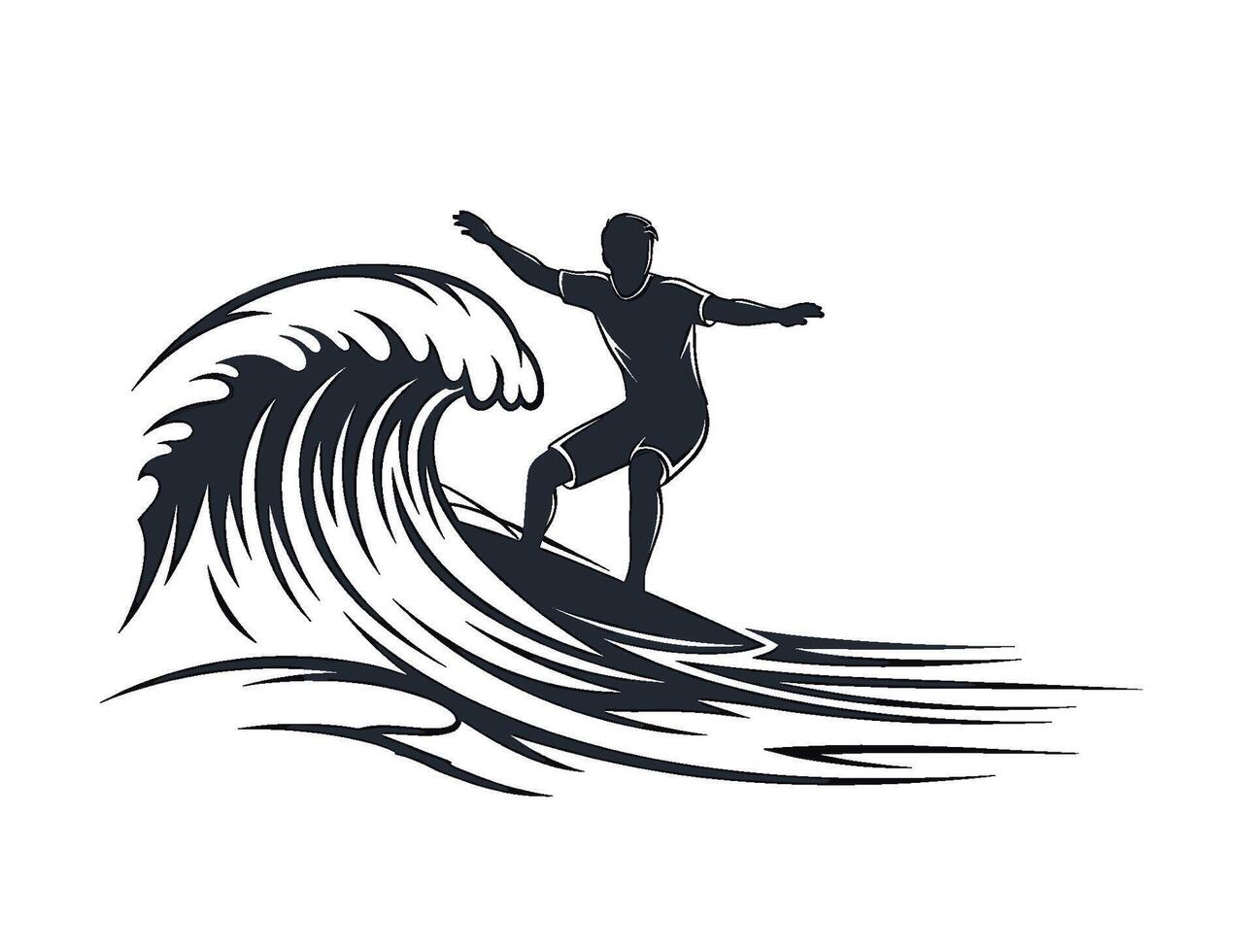 Silhouette of a surfer riding a wave in the ocean showcasing skill and balance creating a dynamic and adventurous scene with a minimalist design vector