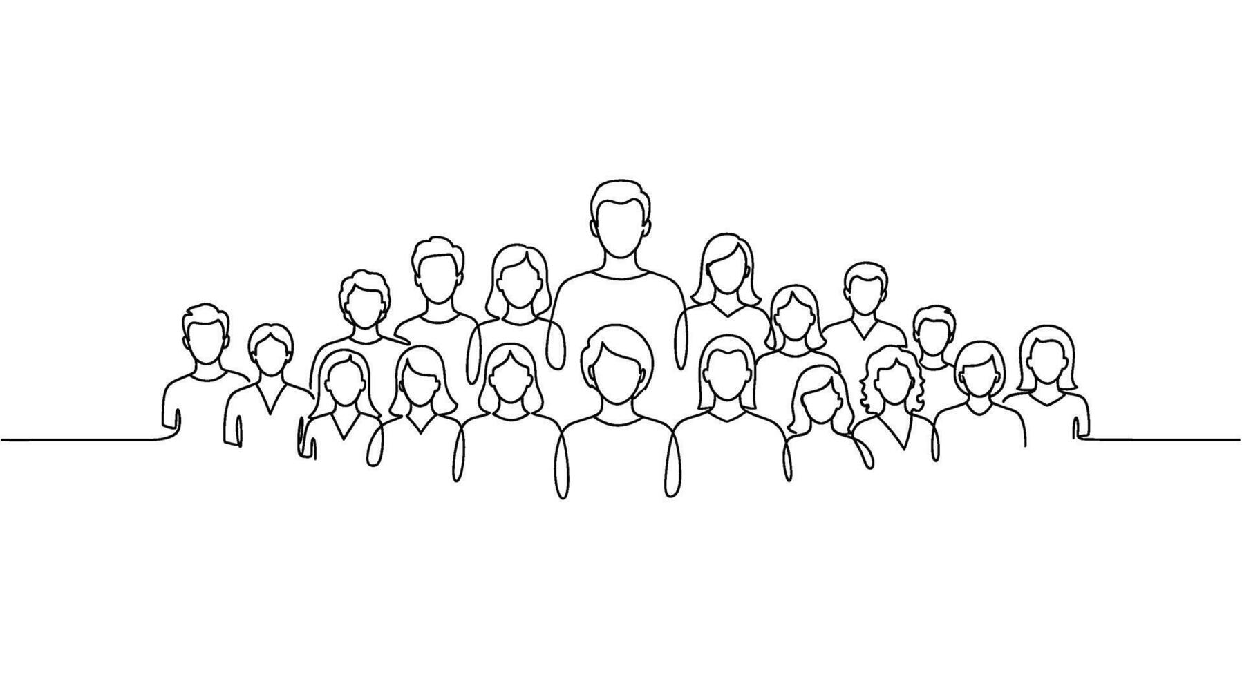 Diverse group of people standing together drawn with a single continuous line on a white representing unity collaboration and community Free Vector