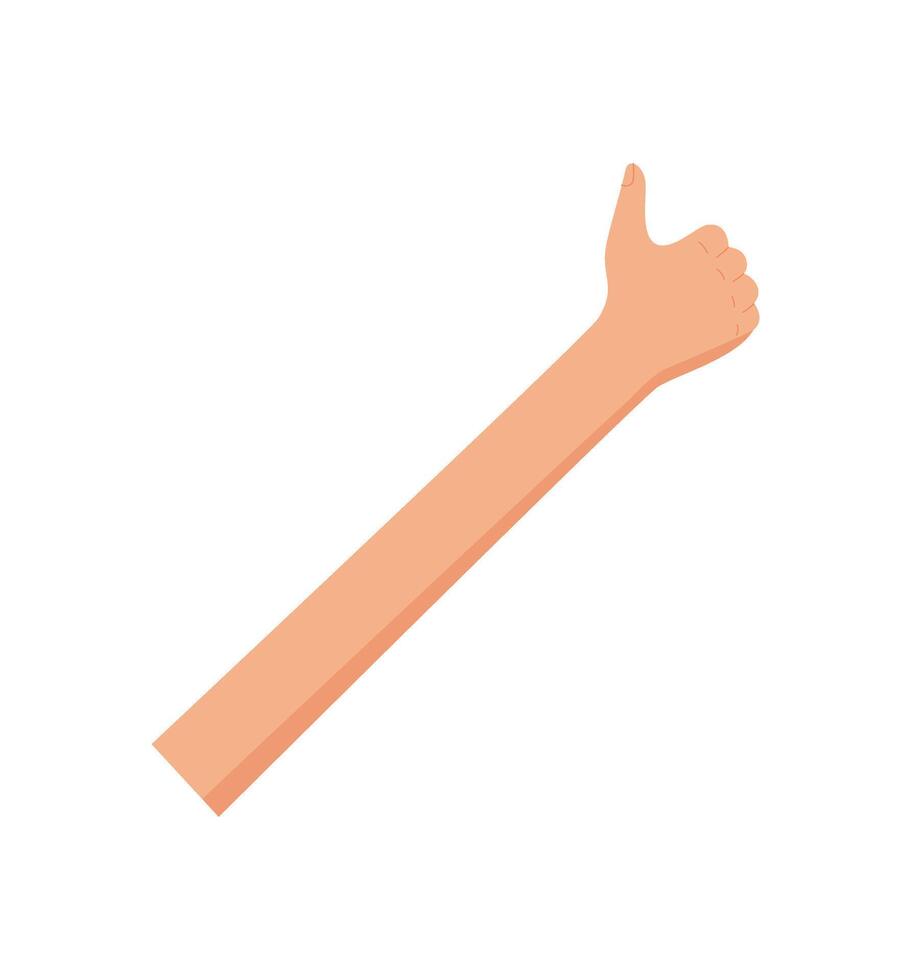 Flat style bare hand gesture with raised finger expressing number one. Simplified arm gesture showing a basic count. Graphic isolated element for education and professional use. Pro Vector