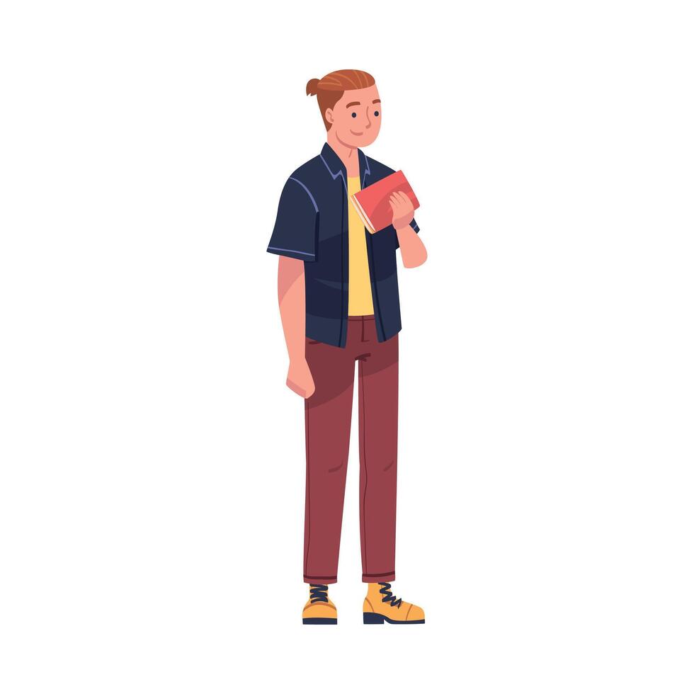 Man as Modern University Student Standing with Notebook Illustration Pro Vector