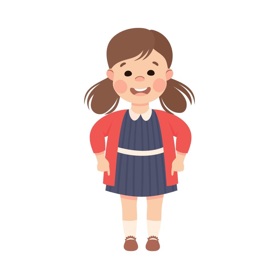 Funny Girl with Ponytail Pointing at Something with Extending Hand and Index Finger Illustration Pro Vector