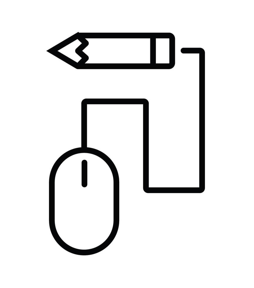 Simple line art icon of a computer mouse and pencil. A symbol for graphic design and digital creativity. Free Vector