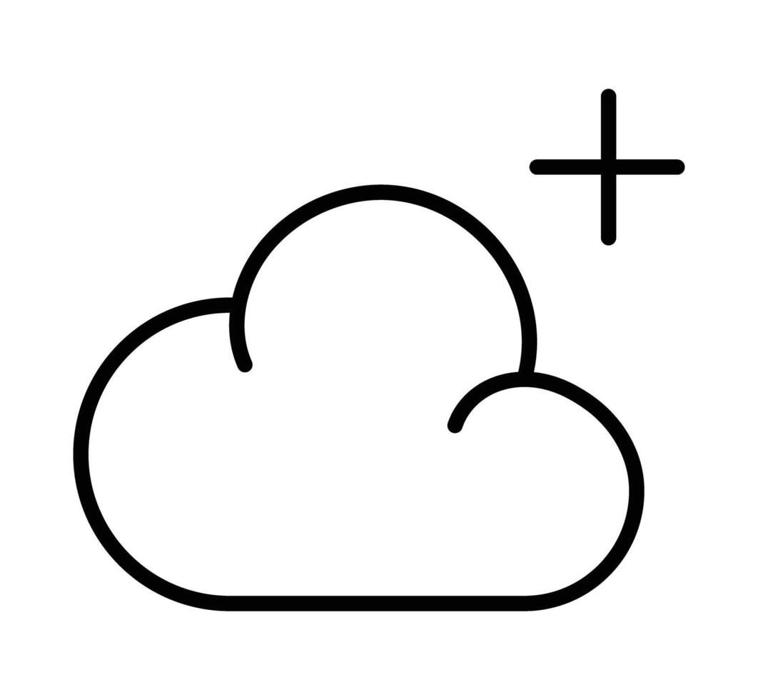 Simple line art icon of a cloud with a plus sign. Symbol for adding to cloud storage or uploading data. Free Vector