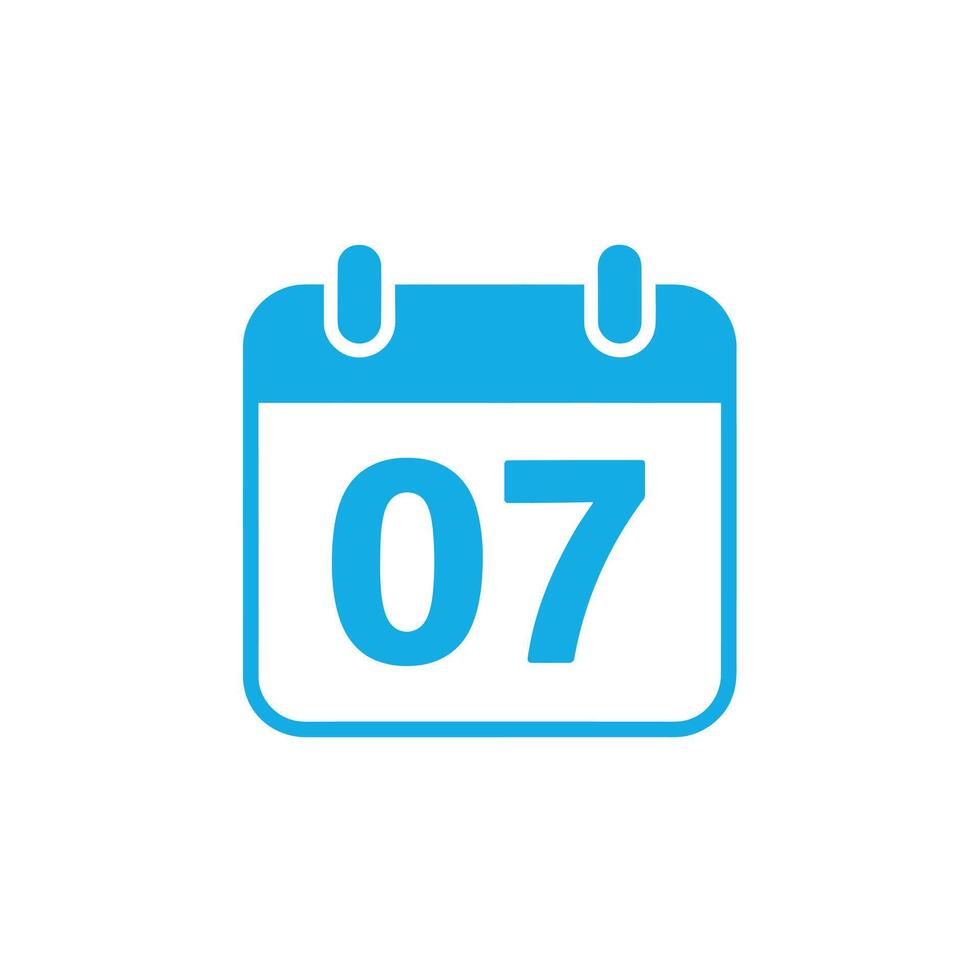 Blue Calendar Icon Displaying Number 07 Isolated on a White Background Pro Vector