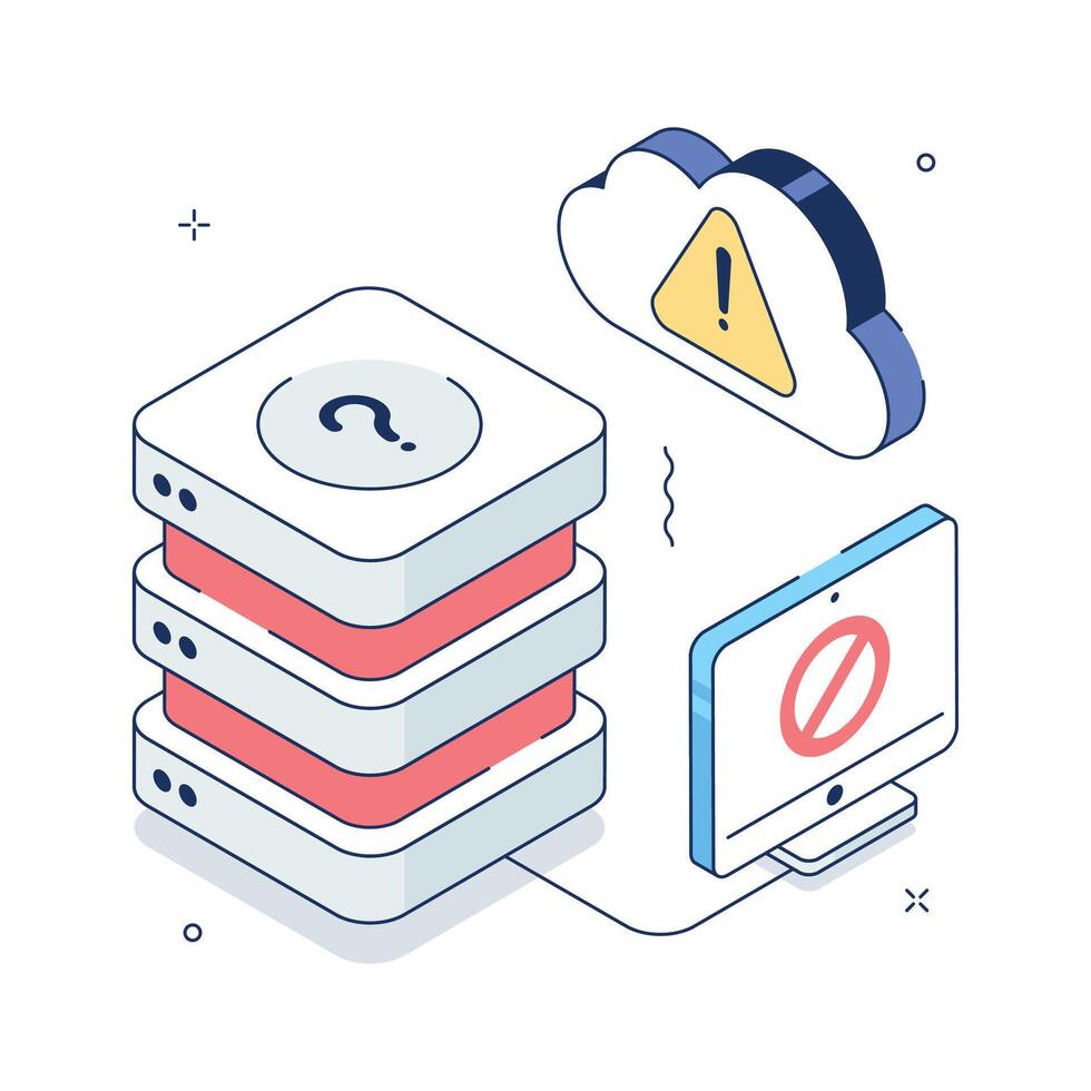 Isometric illustration showing cloud server issue or online backup failure. Pro Vector