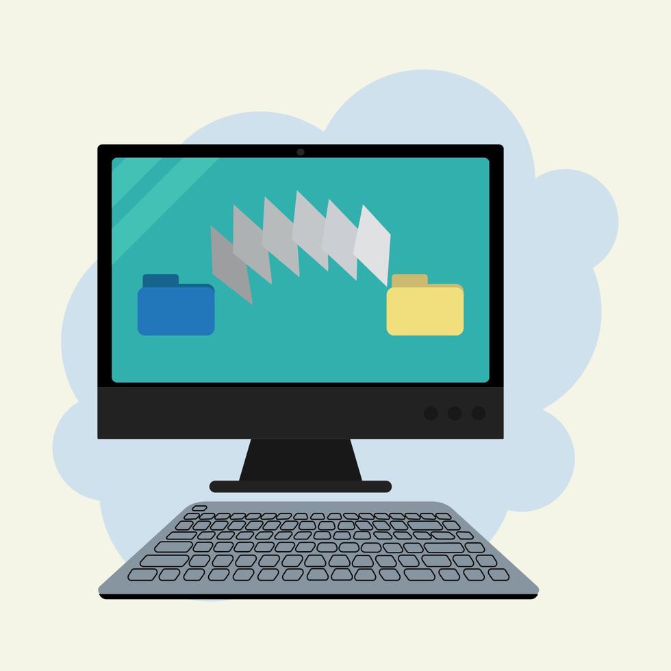 Paper sheet on screen computer and icon of folder. Transfer file concept vector