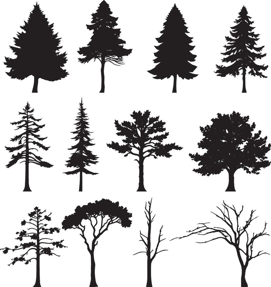Tree Silhouette Collection - Pine, Conifer, Oak, Deciduous, and Dead Trees Graphics for Forest and Nature Design Free Vector
