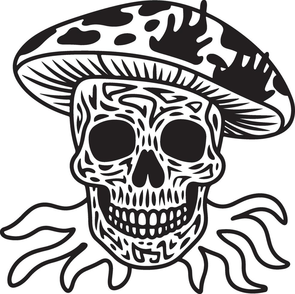 Mushroom Skull with Tentacles Sketch on See-Through Backdrop Pro Vector