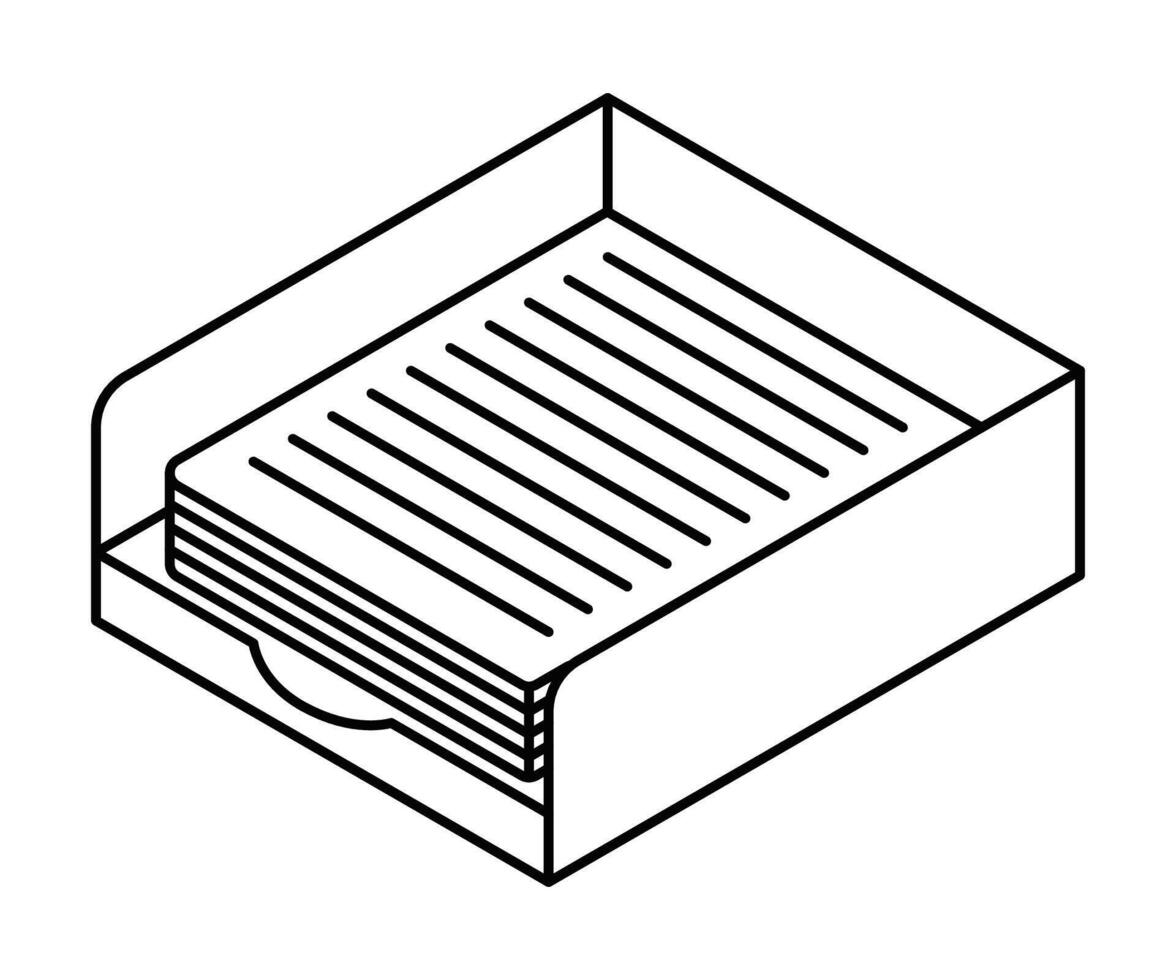 Paper holder with stacked sheets placed in a tray container. Isometric icon. Editable stroke. Pro Vector