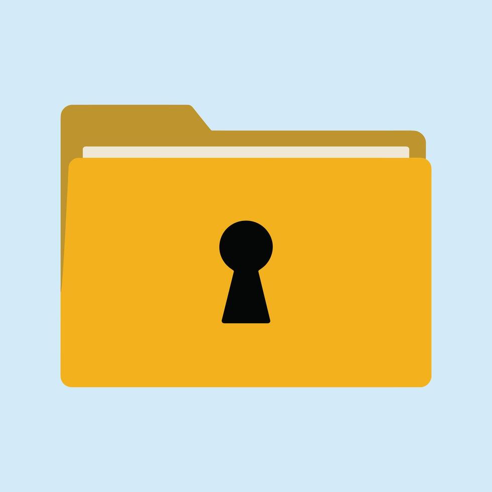 Yellow folder with black keyhole symbol for security and privacy file document Pro Vector