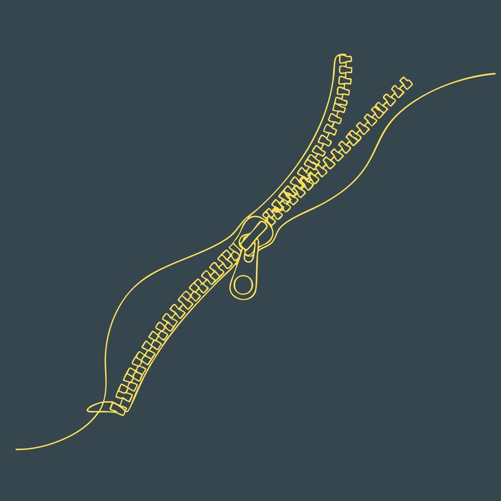 Detailed schematic of a zipper mechanism with interlocking teeth and slider on a dark Pro Vector