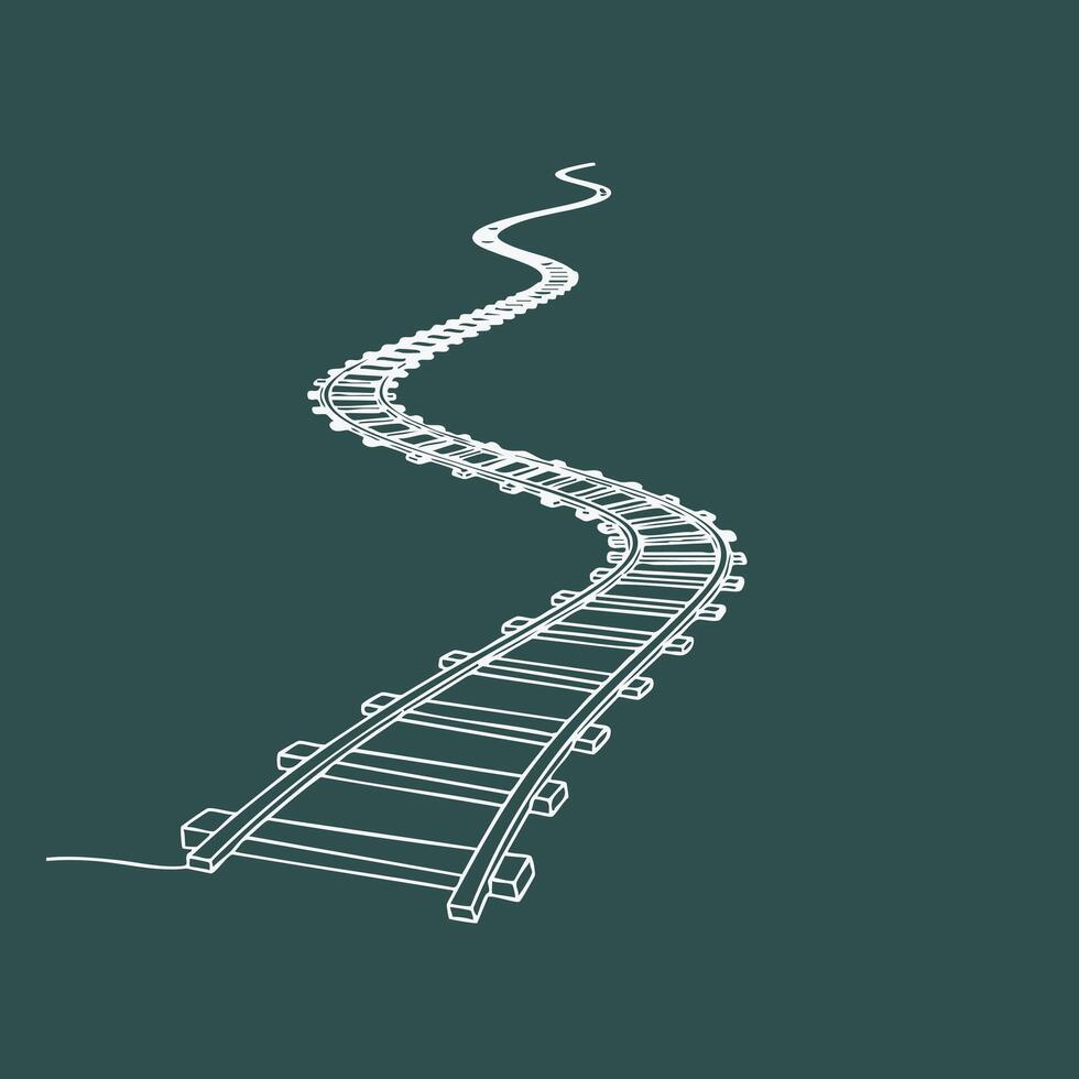 Curving railway track stretching into the distance with a winding path and multiple sets of rails on a dark Pro Vector
