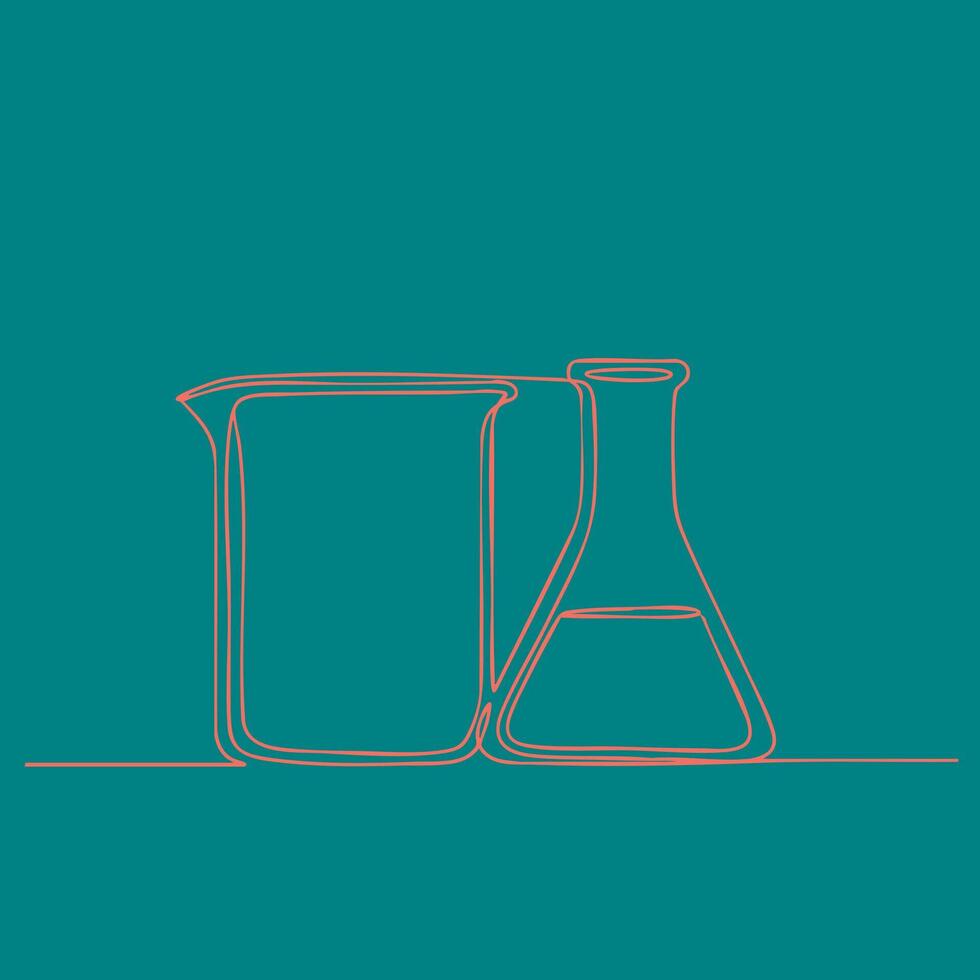 Minimalist line art of laboratory glassware including a beaker and a flask on a solid vector