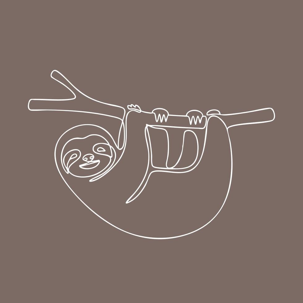 Minimalist Line Drawing of a Sloth Hanging from a Tree Branch on a Neutral vector