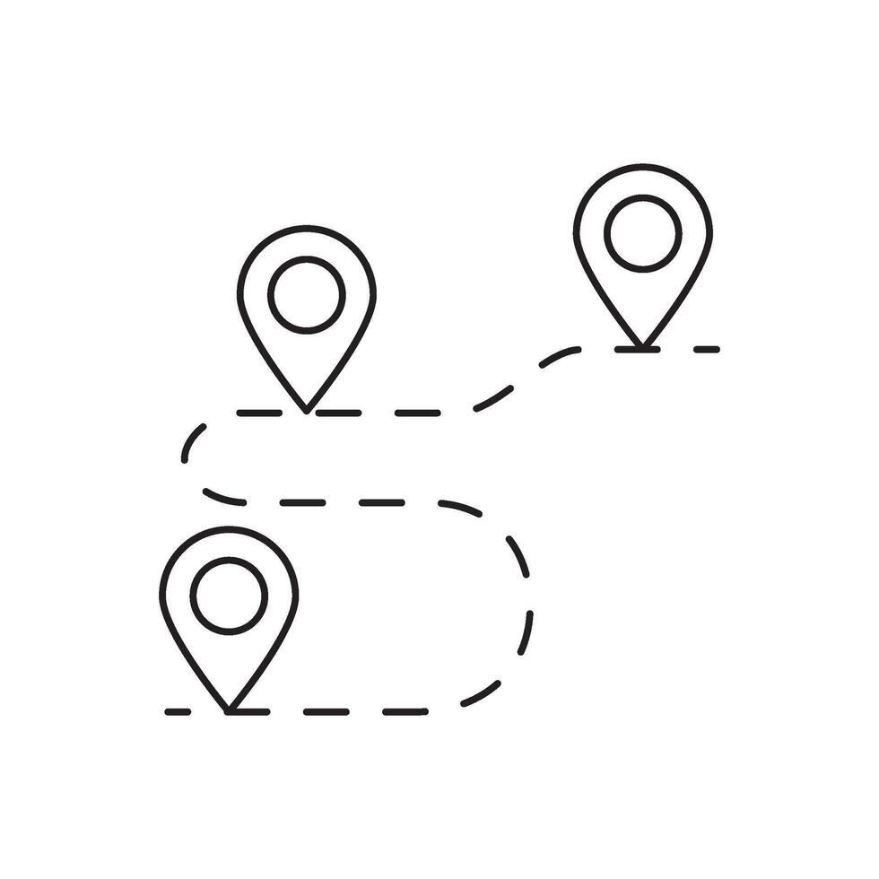 Navigational map pins showing a route with dashed line on a white background, symbolizing travel and location Pro Vector