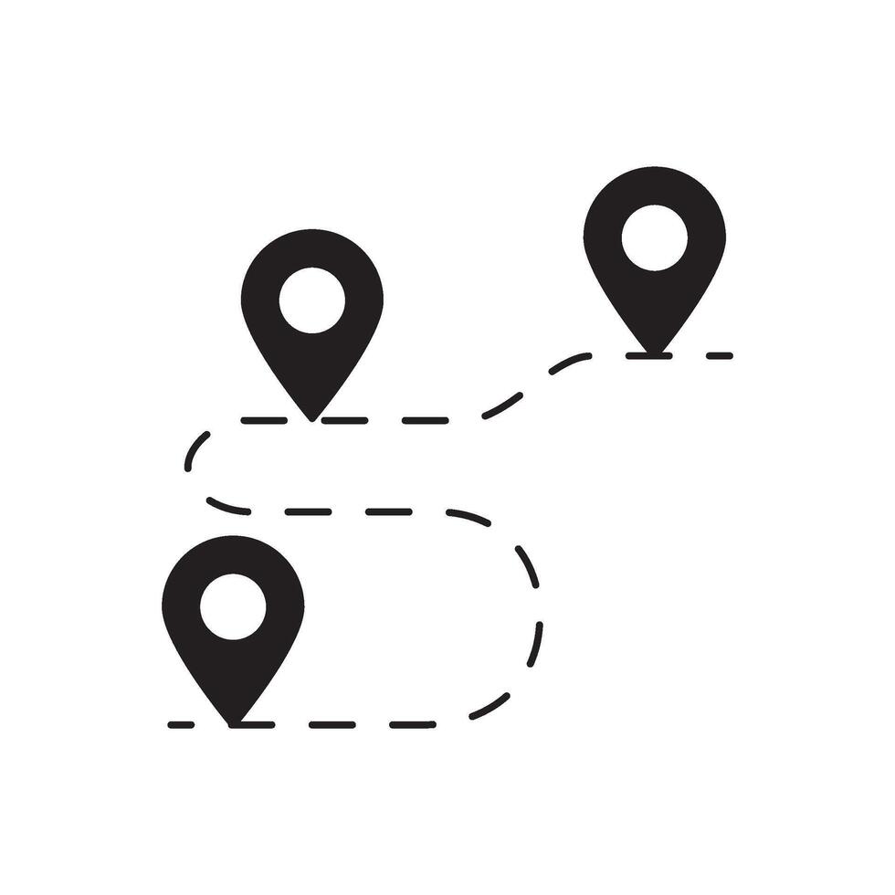 Map route with three location markers and a dashed line showing a path between them, perfect for travel or navigation concepts Pro Vector