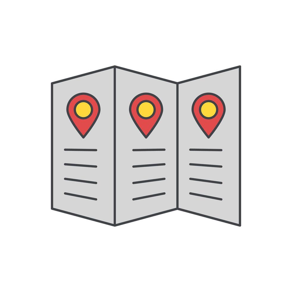 Location icons on a folded brochure or map indicating points of interest for travel and navigation Pro Vector