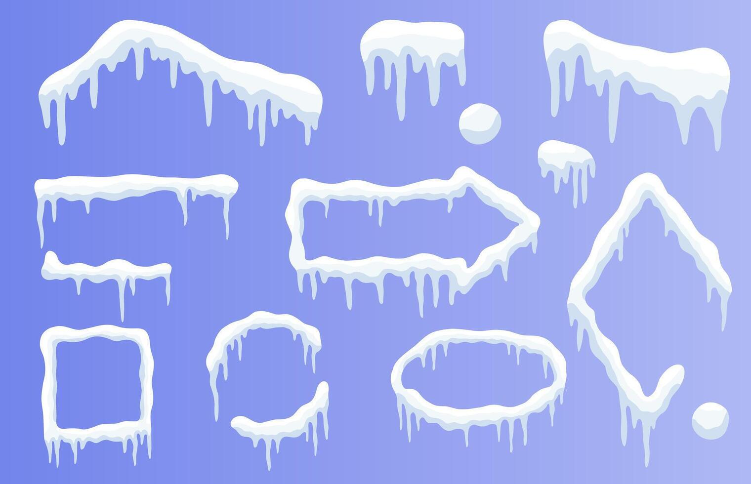 Snowcap arrow, circle, and square frames with ice Pro Vector
