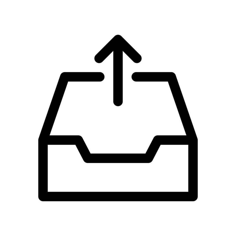 A linear graphic of a storage archive box with an up arrow for filing upload. vector