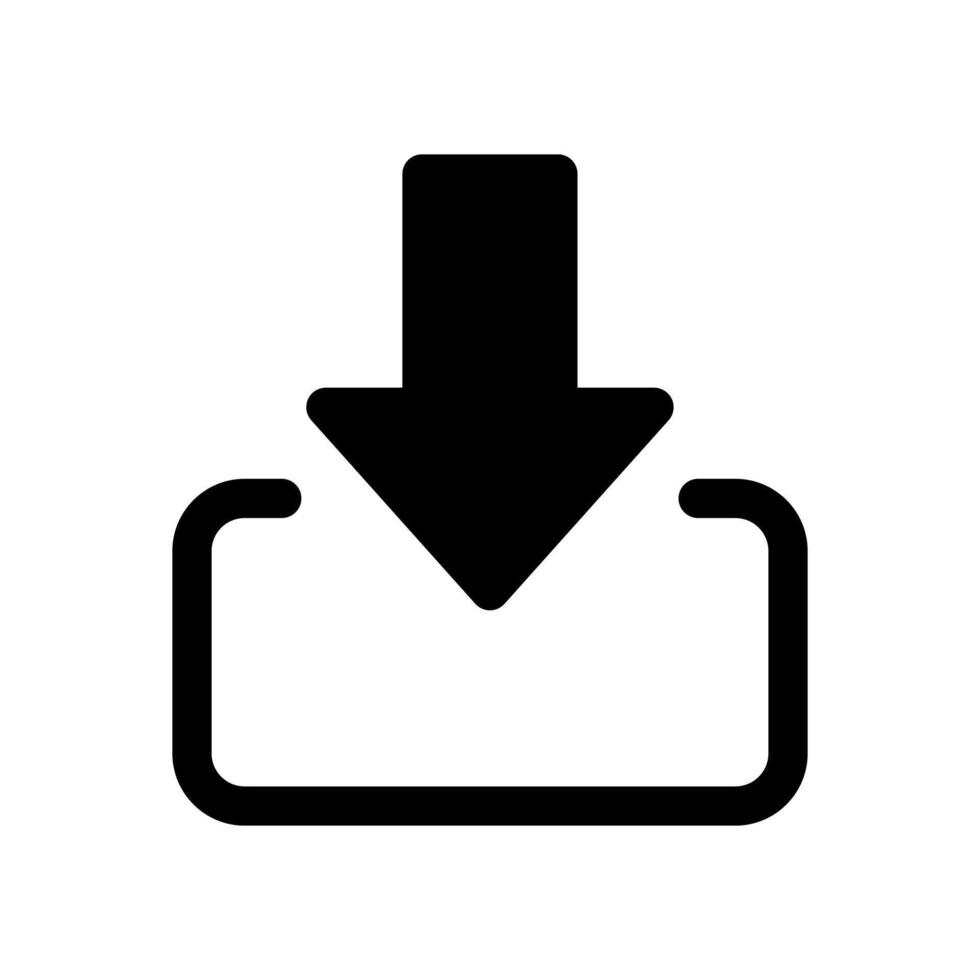 A simple solid icon of a down arrow enclosed in a square for a visible download. vector