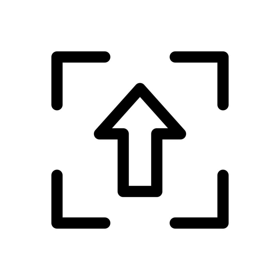 A linear graphic combining a bounding box and an arrow for scan upload or transmission. vector