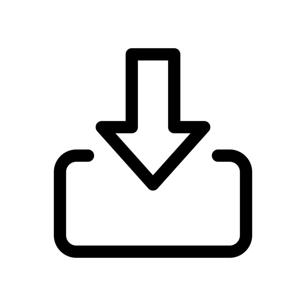 A simple line icon of a down arrow enclosed in a square for a visible download. vector