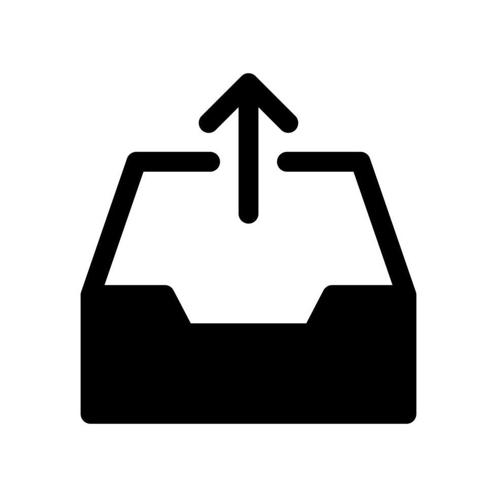 A filled graphic of a storage archive box with an up arrow for filing upload. vector