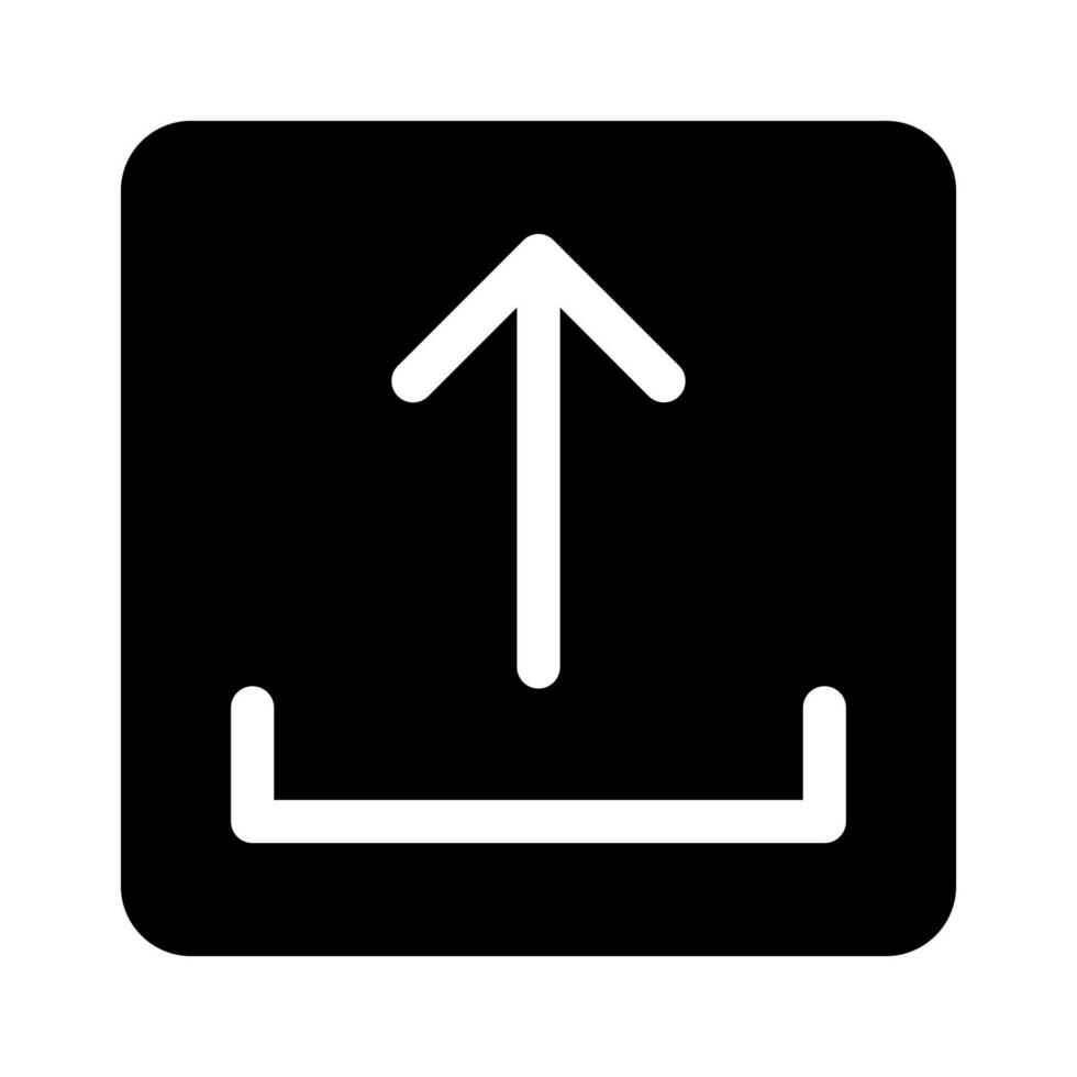 A filled graphic of a container or box with an up arrow for packaged upload. vector