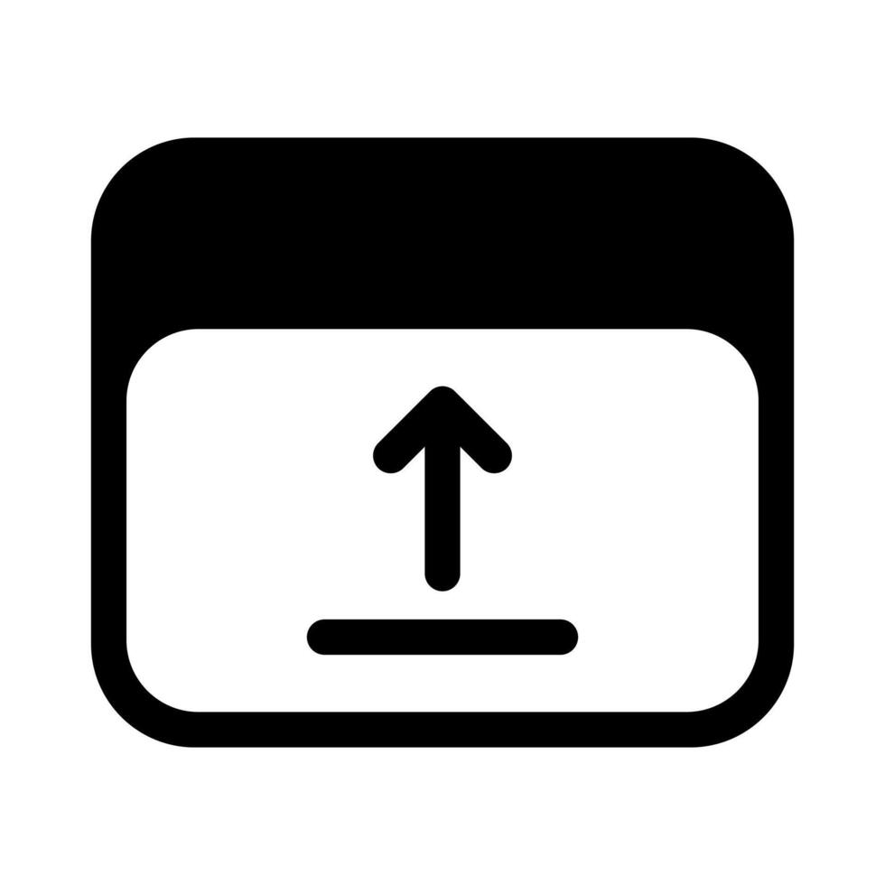 A solid icon of a calendar with an up arrow, representing schedule upload or synchronization. vector