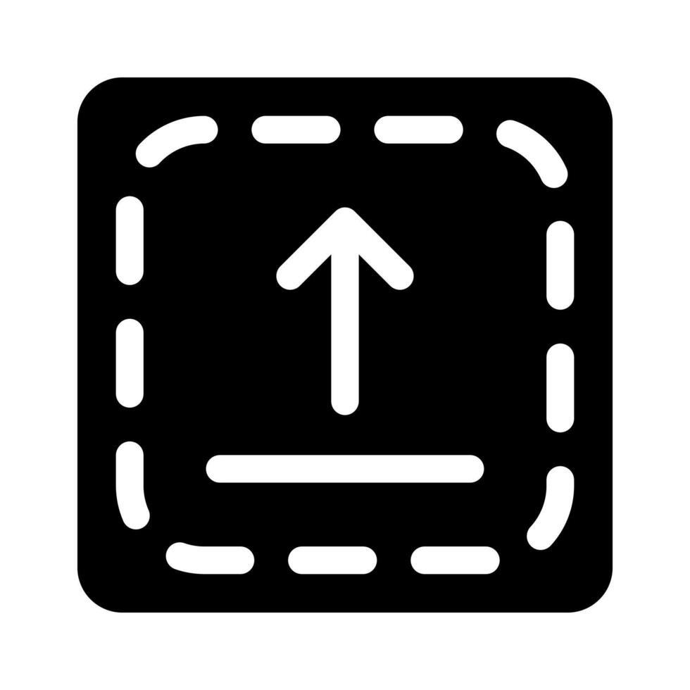 A simple filled icon of an upload symbol with a dash line, indicating an error or broken upload. vector