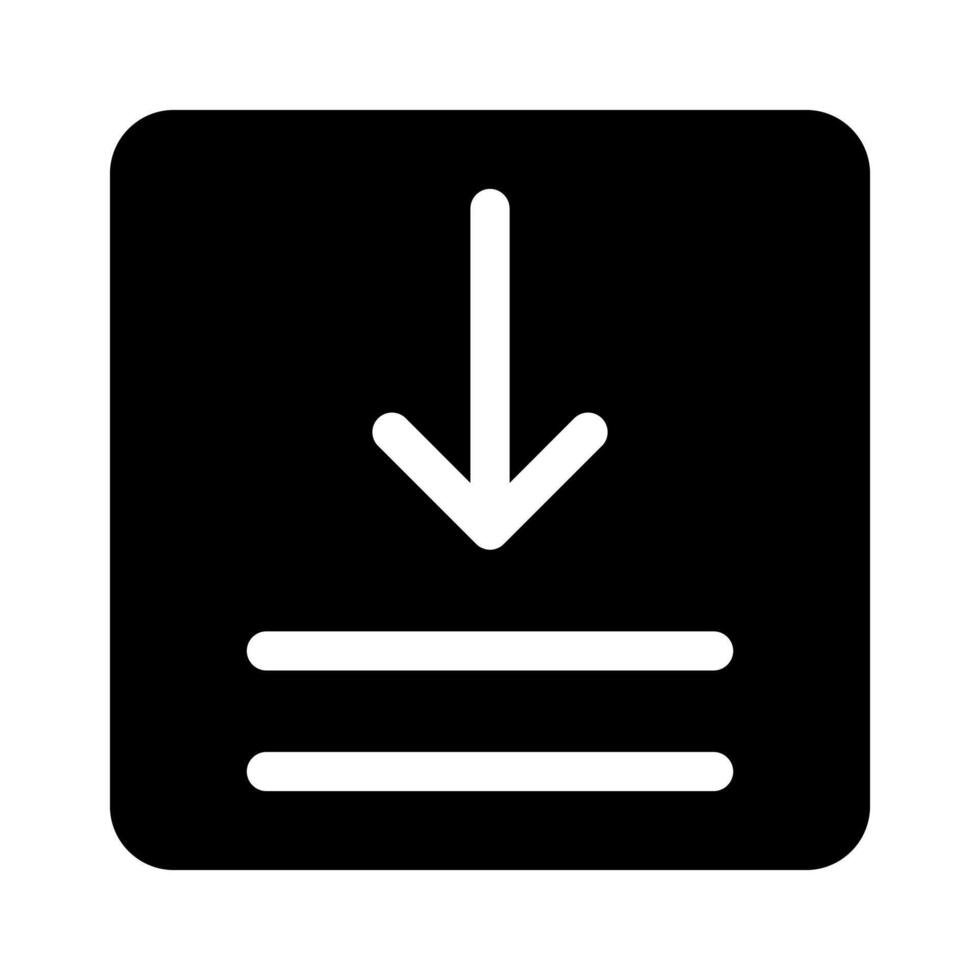 A bold solid icon representing the download of files or data transfer into a device. vector