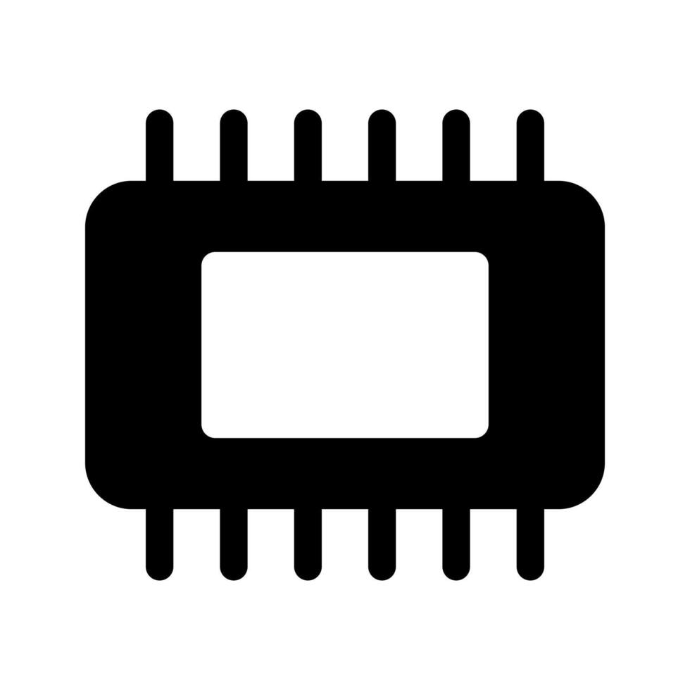 A filled graphic of a CPU microchip or electronic processor. vector