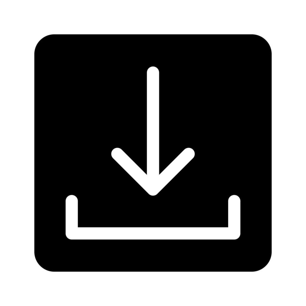 A simple solid icon of a container or box with a down arrow for packaged download. vector