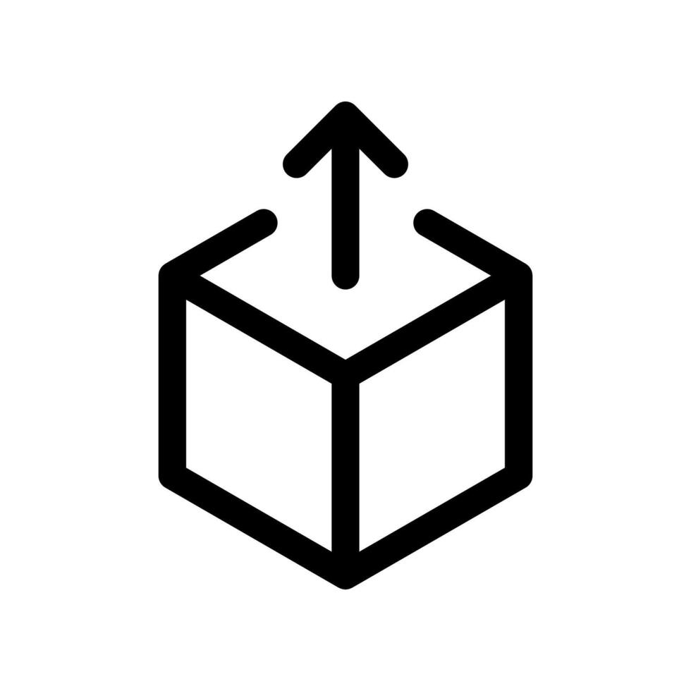 A simple line icon of a wrapped package box with an up arrow for software upload. Free Vector