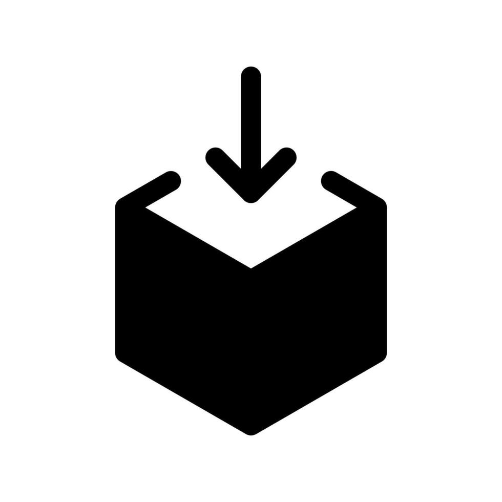 A solid icon of a wrapped package box with a down arrow for software download. vector