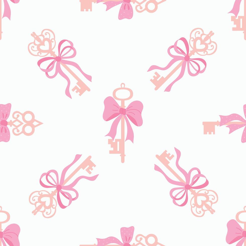 Seamless Pattern of Keys with Pink Bows Pro Vector