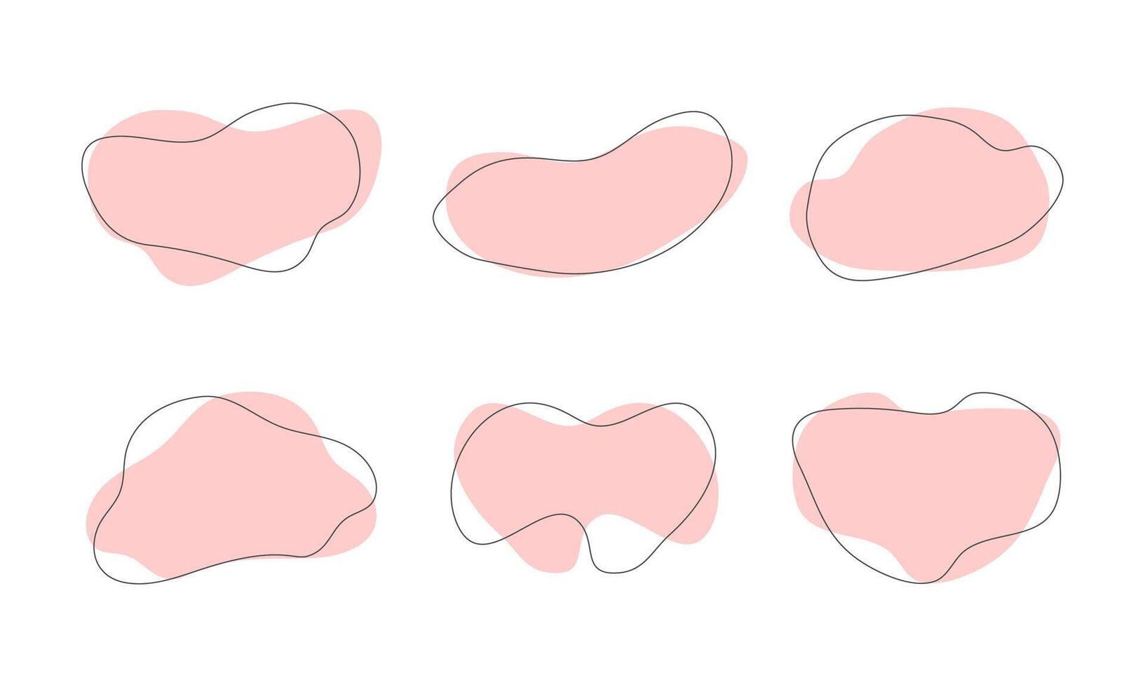 Random bubble spot set. Abstract light pink blob shapes, pastel liquid random forms, fluid silhouette, simple smooth ink stain. Highlight for social media stories. Pro Vector