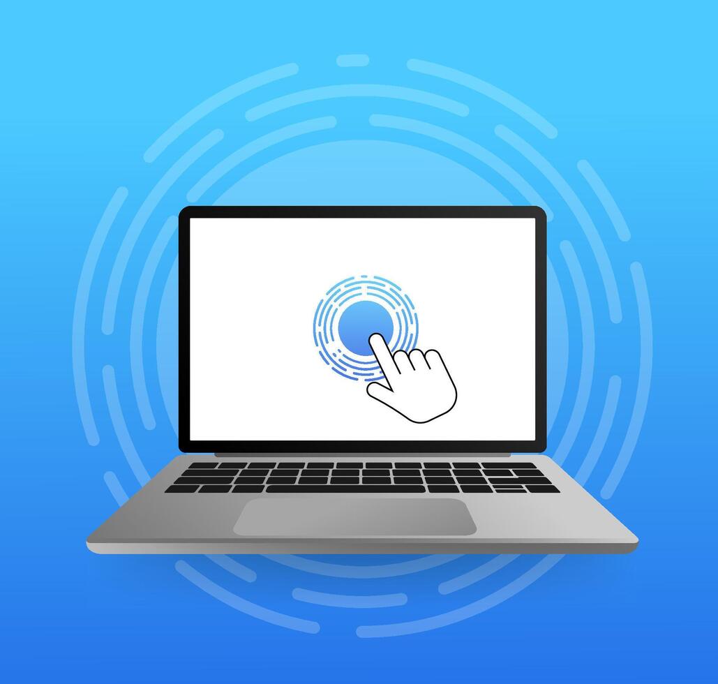 Laptop with cursor. Computer or search click arrow for website. stock illustration. Pro Vector