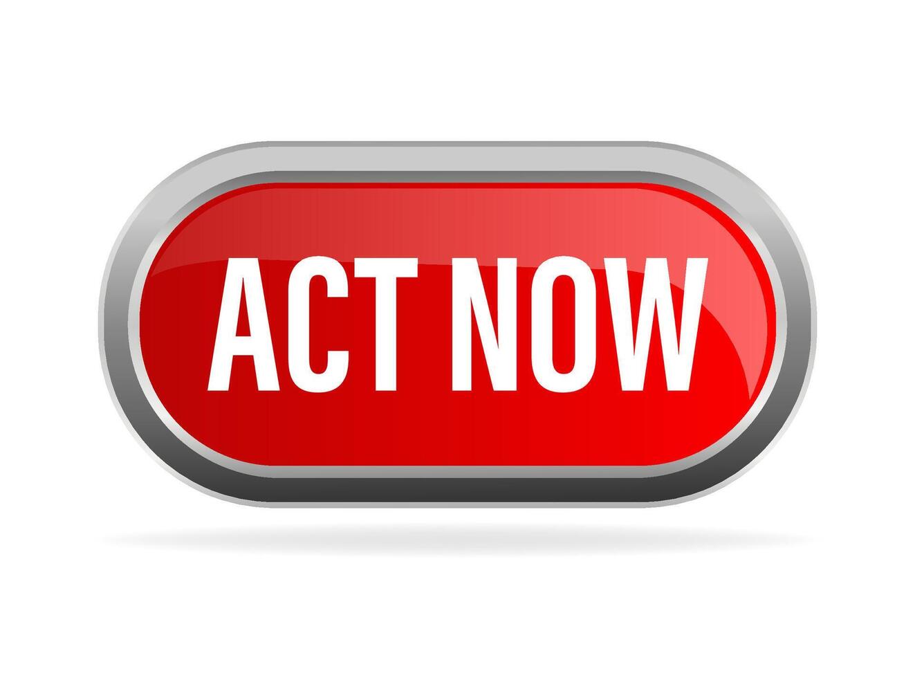 Act now in 3d style on red background. Click icon . Business concept. illustration, flat design. Call icon. Pro Vector