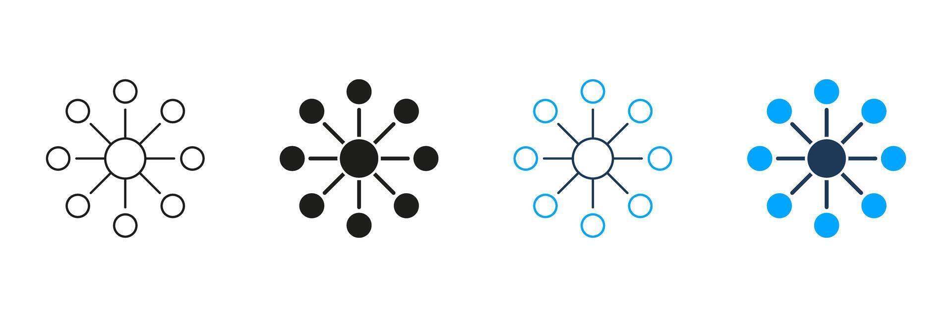 Network Hub And Spoke Line And Solid Icon Set. Centralized Communication And Data Distribution Symbol Collection. Connectivity And Information Flow Representation. Isolated Illustration Pro Vector