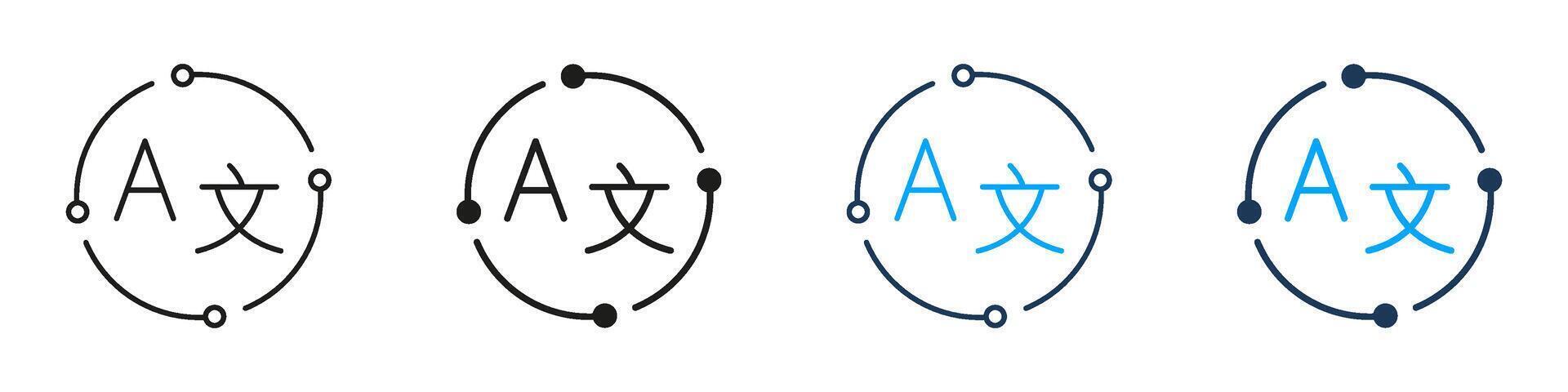 Language Conversion Cycle Line And Solid Icon Set. Continuous Text Change And Multilingual Switching. Isolated Illustration Pro Vector