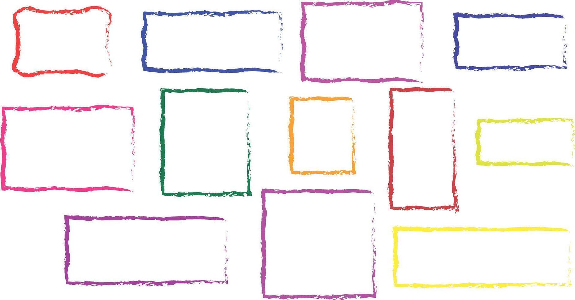 Vertical rectangular frames with scallop edges. rectangular shapes with wiggly borders. Empty square scalloped frames. Pro Vector