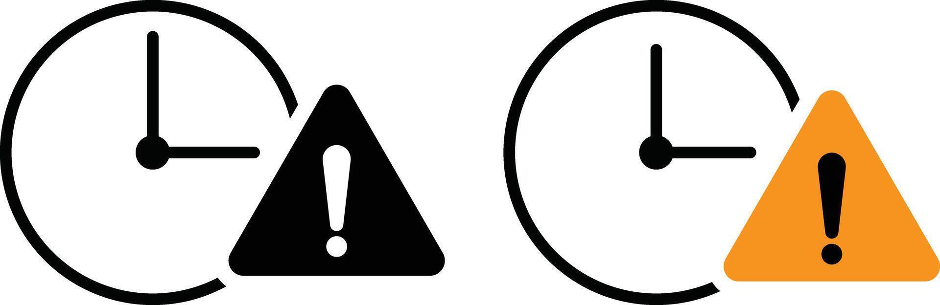 clock with a warning triangle icon. symbolizing time danger or urgency. Clock with an exclamation mark. urgent notification icon Pro Vector